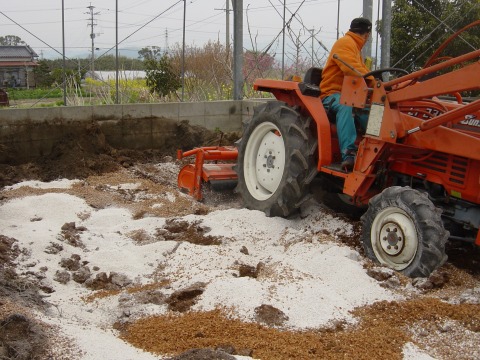 あとはトラクターで攪拌(かくはん)して完了です