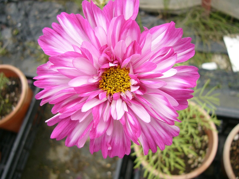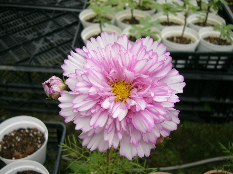 しかし、この八重咲きコスモスには大きな期待が出来そうです。そこで、当農園にて選抜・交配して新たに改良できないものかと、検討し実行中です。