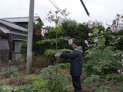 葉も枝も切り落とした皇帝ダリア、結構太く育っています。
