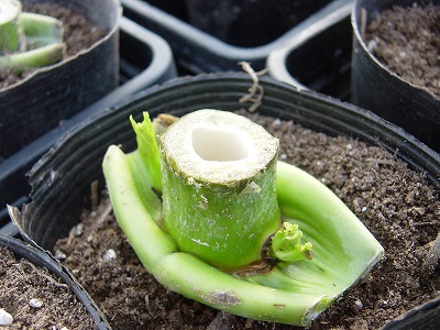 写真のように、節ごとに植えれば繁殖はできます。但し、切断面はきれいにしておかないと根が出にくいです。しばらくこのままで休眠するので霜や凍結に注意しながら春まで待ちます。切り株かこちらのどちらかが、生き残れば来年も楽しめますよ。